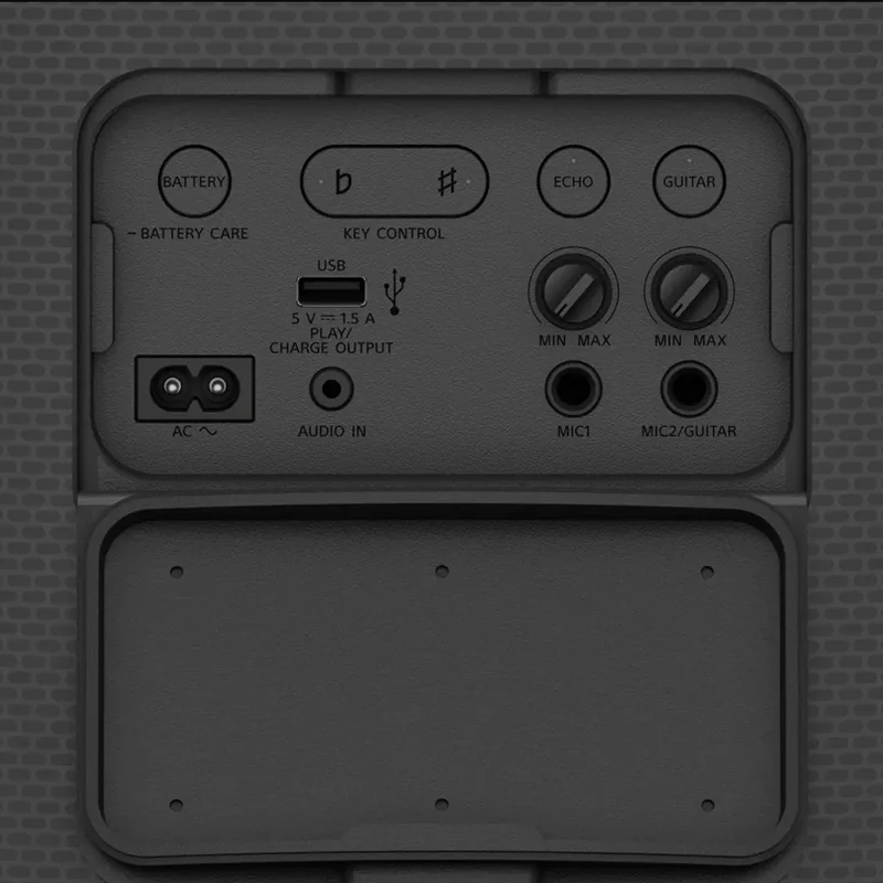 سونی SRS-XV500 ازلحاظ طراحی بسیار محکم و جذاب به نظر میرسد. این اسپیکر با بدنهای از جنس پلاستیک مقاوم ساختهشده که از کیفیت بالایی برخوردار است و بهراحتی میتواند در برابر شرایط مختلف محیطی دوام بیاورد. اندازهبزرگ این اسپیکر و وزن ۱۱.۲ کیلوگرمی آن، شاید برای برخی کاربران سنگین به نظر برسد، اما این وزن و ابعاد، ویژگیهای خاصی را هم به همراه دارد؛ زیرا این اندازه و حجم بزرگ امکان جایدهی بلندگوها و ووفرهای بزرگتری را فراهم میکند که منجر به تولید صدایی بسیار قوی و رسا میشود. پنل لمسی قرارگرفته در قسمت بالای دستگاه کنترل ساده و راحتی را در اختیار کاربران قرار میدهد. کاربران میتوانند بهراحتی بین حالتهای مختلف صوتی جابهجاشده یا میزان صدا را تنظیم کنند. این اسپیکر همچنین دارای ورودیهای مختلفی مانند میکروفون و گیتار است که برای کسانی که به موسیقی زنده و اجراهای کوتاه علاقهمندند، بسیار کاربردی خواهد بود. همچنین قابلیت مقاومت در برابر آب با گواهی IPX4، این امکان را فراهم میکند که از اسپیکر در محیطهای مرطوب یا کنار استخر هم بهراحتی استفاده کرد.
