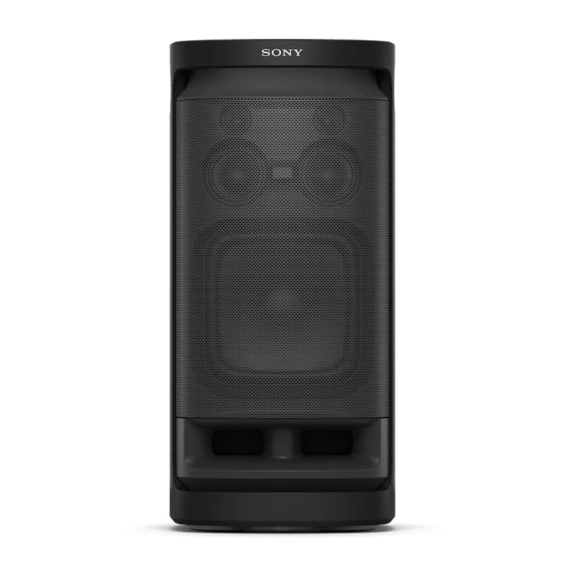 سونی SRS-XV900 با ابعاد ۴۱۰ در ۸۸۰ در ۴۳۹ میلیمتر و وزن قابل توجه ۲۶.۶ کیلوگرم، حضوری قدرتمند و با ابهت دارد که از همان ابتدا، نشان از تواناییهای صوتی فوقالعادهی آن میدهد. طراحی این اسپیکر با خطوط پویا، بدنهای از پلاستیک فشرده و باکیفیت که بخشی از آن از مواد بازیافتی تهیه شده، و پنل کنترل لمسی بسیار حرفهای در قسمت بالایی، ترکیبی از استحکام، زیبایی مدرن و کاربری آسان را به نمایش میگذارد. با وجود این جثهی بزرگ، مهندسان سونی با تعبیهی یک دستگیرهی محکم و ارگونومیک در قسمت پشتی و چرخهایی روان و مقاوم در قسمت پایینی، جابجایی این غول صوتی را به طرز شگفتآوری تسهیل کردهاند. این قابلیت حمل آسان به شما اجازه میدهد تا جشن و موسیقی را به هر کجا که میخواهید، منتقل کنید. پنل بالایی این اسپیکر دارای استاندارد مقاومت در برابر پاشش آب IPX4 است. این ویژگی به این معناست که میتوانید با خیال راحت از آن در محیطهای مرطوب، کنار استخر یا مهمانیهایی که احتمال پاشش نوشیدنی وجود دارد، استفاده کنید و نگران آسیب دیدن کنترل پنل لمسی آن نباشید.