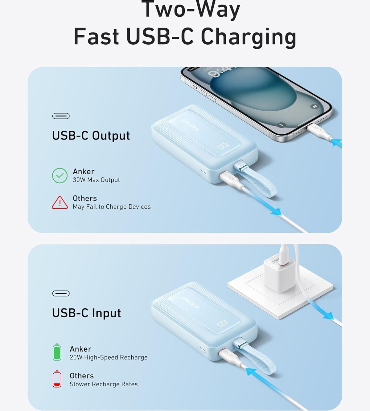 با پاوربانک 20000 میلیآمپر 30 وات انکر مدل A1689، همیشه به برق متصل بمانید! این ابزار قدرتمند با ظرفیت بالا و سرعت شارژ فوقالعاده، دستگاههای شما را در هر شرایطی شارژ میکند. طراحی سبک و مقاوم، همراه ایدهآل شما در سفرها و روزهای پرترافیک است. همین حالا تهیه کنید و از تجربه بینظیر شارژ سریع لذت ببرید!